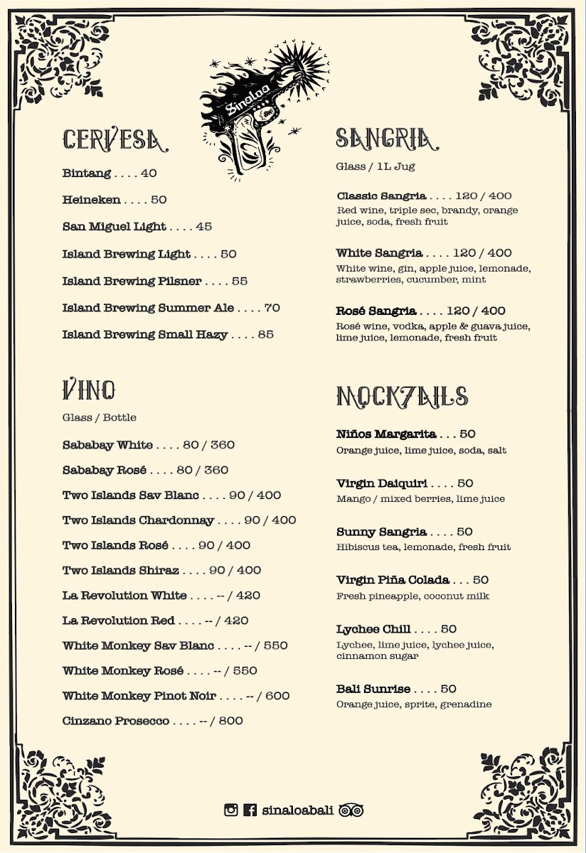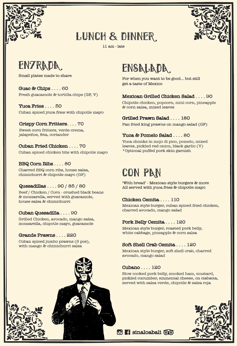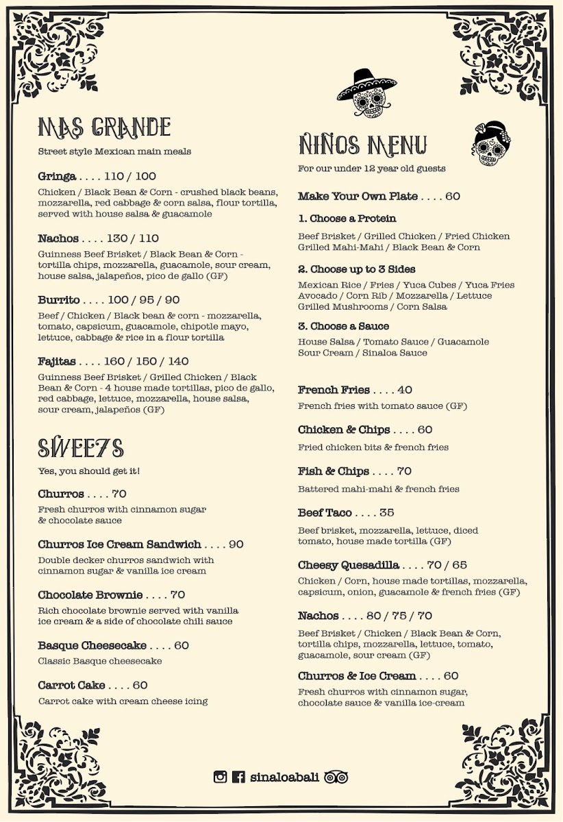 The menu at Sinaloa Bali offers a welcoming blend of authentic Mexican flavors presented in a casual, approachable style. You’ll find dishes that navigate effortlessly between satisfying casual lunches, hearty dinners, and relaxed evening gatherings. Simple yet thoughtfully prepared, the menu features comforting staples like tacos and burritos alongside shareable bites perfect for groups lounging over drinks.